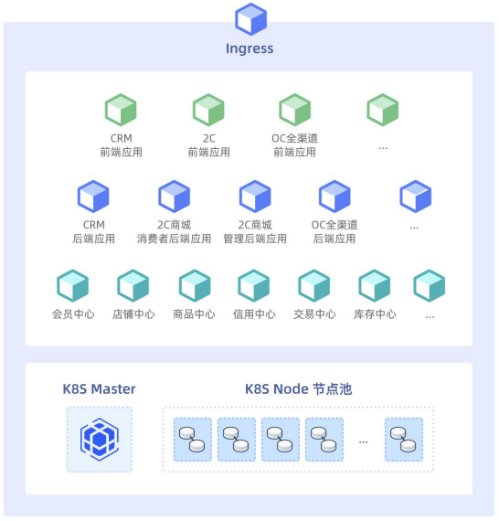 (1)引入容器化,采用容器镜像确保应用在不同环境的稳定运行,无需关注底层运行环境的差异性,并顺利获得K8S管理和编排容器,保证系统的高可用和弹性伸缩;