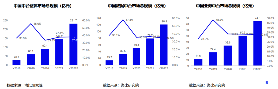 2021年我国中台整体市场规模为144.2亿元,2022年增长率为37.8%,达到231.7亿元,远高于软件的平均增长率。